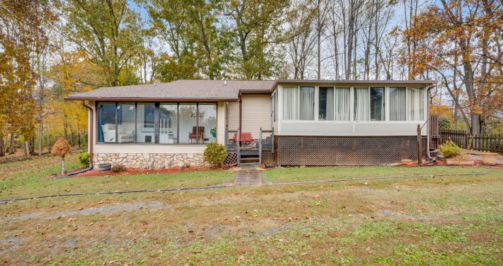 Step in to an open, easy flow between the dining room, kitchen, and living room, featuring hardwood floors and a stone fireplace with hand-carved mantel. The spacious primary suite features a walk-in closet, full bath, and your own heated sunroom that brings the outdoors in. The 4th bedroom also has a heated sunroom with outside entrance.