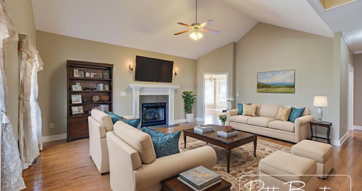 The main level features three bedrooms and two full baths, including the primary suite, plus a nice laundry/mudroom for everyday ease. The living room with vaulted ceiling and gas fireplace is the perfect place to gather. Hardwood floors, 9-foot ceilings, and crown molding flow throughout.